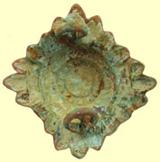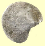 14thC 1 Ib 9oz trade weight - 60.94mm dia x 9.29mm thick Very rare find of the earliest trade weight you can find with a Crown like those on Edward III coins - these date from the late 14th C and were later superceded by the Crown and a monarch letter i.e h for Henry VIII, El for Elizabeth 1st.