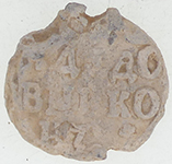 | 17thC lead token | 1500-1700 spur buckle | 1880-1890 John Robert Bedwell token Colchster EssexObverseLegend on five lines, the top and bottom curved. Lettering: ReverseLegend on five lines, the top three and bottom one curved. Lettering: |