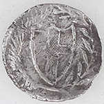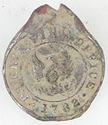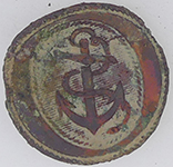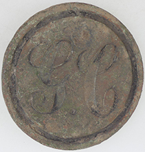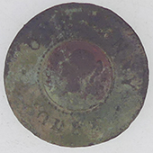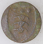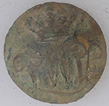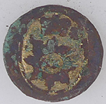 | Medieval lead token | 19th C livery button | 19th C livery button | |||||