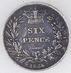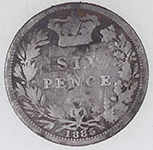 | 1885 Victoria milled silver sixpence | 1816- 1820 George III milled silver sixpence | ||||||
