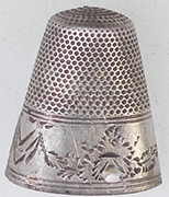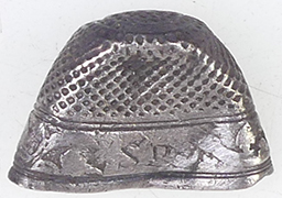 | Georgian silver thimble - Initialled SR | WWI Essex Regiment sweetheart badge | Victorian silver thimble | |||||