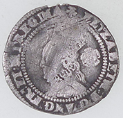 | 16thC Elizabeth 1st hammered silver sixpence | 1500-1700 mount | 80th Regiment of foot button Description: 80 under Staffs knot under crown within wreath. Category: Regular Army; Type of button: Convex 18mm ; Metal: Copper Alloy gilt; Backmark: C JENNENS LONDON Date: 1820-1830 |
