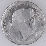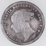 | 1696 William III milled silver shilling | 1843 Victoria milled silver four pence | ||||||