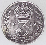 | 19thC Victoria milled silver three pence | 1915 George V milled silver shilling | ||||||