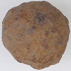 | 1582 -3 Elizabeth 1st hammered silver half groat | 16thC Stone,1oz musket ball, 1.1 inch dia | 18thC clog fastener | |||||