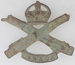 Royal artillery button Post 1831 version - three cannons pointing left with the Royal crown over- The design was changed in 1840 with the addition of the 'Ubique' scroll below the lower cannon |