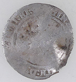 | 1797 Carlos IV Spanish milled silver coin | 1854 Victoria milled silver three pence | ||||||