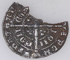 1247 Henry III hammered silover voided half penny Rev VND/NIC - Moneyer Nicole of London mint |