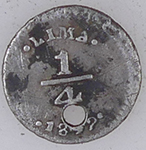 | 1839 Peru milled silver 1/4 Real | Medieval buckle | Victorian silver button | |||||