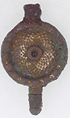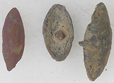 | Post medieval knife pommel | 17thC lead token | Medieval mount | |||||