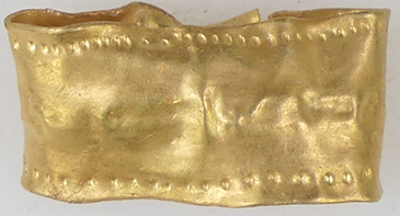 Ancient gold band - Bronze Age design c 1300 BC 3.8g, 28.6 mm L x 14.34 mm H x 0.6mm T |