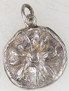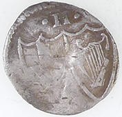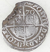 | Medieval sexfoil mount | Georgian trade weight | 1836 William IV milled silver four pence | |||||||||||||||||||||||