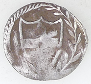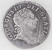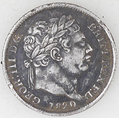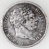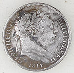 | 1817 George III milled silver shillings | 18thC lead sewing palm guard | ||||||||||||||||||||||||
