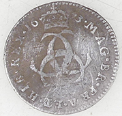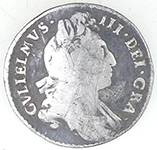 | 1603 James 1st hammered silver half groat | 1697 William III milled silver sixpence | ||||||||||||||||||||||||