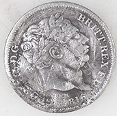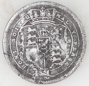 | Unknown miltary button | 19thC livery button | 1816 George III milled silver sixpence | |||||||||||||||||||||||