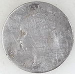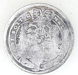 | Irish 1856-81 Kilkenny Regiment button | London North Eastern railway button | 1887 Victoria milled silver sixpence | |||||||||||||||||||||||
