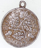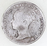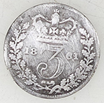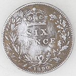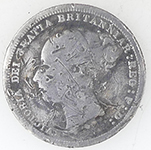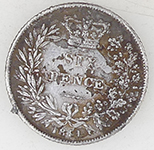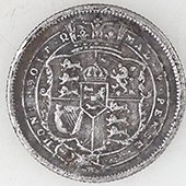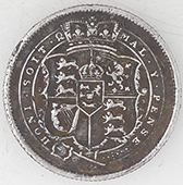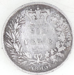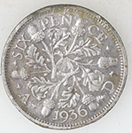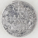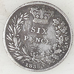 | 1936 George V milled silver sixpence | 1851 Victoria milled silver three pence | ||||||||||||||||||||||||