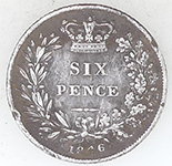 | 1697 William III milled silver sixpence love token | 1846 Victoria milled silver sixpence | ||||||||||||||||||||||||