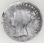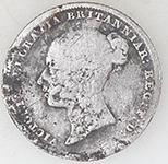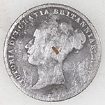 | Medieval bronze pot foot | 1859 Victoria milled silver three pemce | ||||||||||||||||||||||||