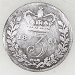 | 1865 Victoria milled silver three pence | 1578 - 1579 Elizabeth 1st hammered silver half groat - Greek cross mint mark | ||||||||||||||||||||||||