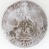 | 1924 George milled silver shilling | Medieval lead token | ||||||||||||||||||||||||