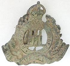 | 1820 George III milled silver shilling | 17th C lead token | WWI The Suffolk Regiment cap badge | |||||||||||||||||||||||