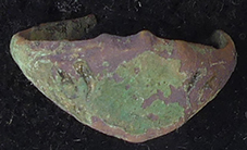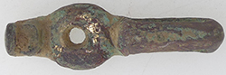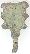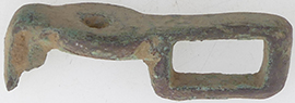 Late Early Medieval (Anglo-Scandinavian) cast copper alloy incomplete cheek piece from a harness fitting. See PAS ESS-C06D96 HARNESS FITTING (Certain)