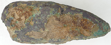 The flat axe is broadly sub rectangular in shape with a splayed crescent shaped blade. In profile it is broadly lentoid, with slight tapering edges. The butt is relatively thin having a narrow rounded profile. The sides of the axe gently expand in width from the butt to the blade; in shape they are relatively curved. The sides of the blade expand to produce a crescentic blade edge . The tips of the crescent shaped blade have been damaged through either abrasion or wear, as has the blade edge itself. Casting 'flaws' or air bubbles are present over most of the surface of the flat axehead. The axe is a mid to dark green colour, with an uneven surface patina. Abrasion, caused by movement whilst within the ploughsoil, has resulted in a loss of some of the original surface detail. The axehead is best described as coming from the first phases of the Early Bronze Age and is comparable to (although not containing all the attributes of Migdale axes (many of these tend to have narrower butts which flare at the cutting edge). These axes all fit within the earliest phases of metal working in Britain, metalworking stage II, which corresponds to Needham's (1996) Period 2 circa 2350- 2050 CAL. BC. This means that they are dated, broadly, to the same period as Beaker pottery, barbed and tanged flint arrowheads, copper halberds and gold lunulae. Reference: Needham, S. (1996) Chronology and Periodisation in the British Bronze Age. Acta Archaeologia, vol 67, pp121-140 Schmidt, P.K. & Burgess, C.B. 1981. The Axes of Scotland and Northern England. Prahistorische Bronzefunde. Abteilung IX. Band 7. C.H. Beck'Sche Verlagsbuchhandlung, Munchen. p.46-47. Broad period: BRONZE AGE Subperiod from: Early Period from: BRONZE AGE Subperiod to: Early Period to: BRONZE AGE Date from: Circa 2350 BC Date to: Circa 2050 BC
