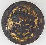 | Georgian bell type trade weight | 19thC hunting button | 5thC Dragoons button - Crimeran War period | |||||||||||||||||||||||