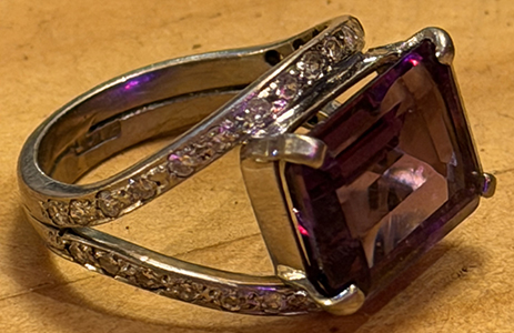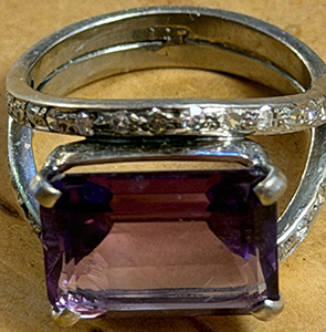 | Tested as 18 carat white gold ring with amethyst and diamonds | |||||||||||||||||||||||||