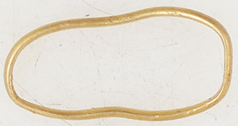 1803 Gold ring - London date letter H -duty paid bust of George 1.0g, 22.3 mm L Maker SG - Could be Saml. & Tiny 1300 BC gold ring - reported as treasure 0.36g, 6.7mm dia 70BC Morini 'boat tree' Celtic gold qtr stater - reported to museum 1.42g, 10.21mm Victoria gold watch winder Tudor gilded silver clothing fastener - reported as treasure to museum