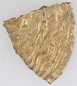 Gold wrist Torc fragment ? reported as treasure to museum 8.1g, 35mm L x 4.9mm dia 1stC BC to 1stC AD Celtic Woad cosmetic grinder - boat shaped The grinder was used to pulverise vegetable material such as woad in the preparation of dyes. These are also known as perfume or cosmetic grinders. During the Celtic period in Britain a biennial herb called Isatis Tinctoria; was cultivated for the blue dye that could be obtained from it when crushed. This plant is also known as woad. The dye would then be applied to the skin Gold casting waste - 2.94g, 16mm L