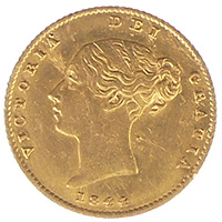 1844 Victoria milled silver gold half sovereign 4.0g, 19.32mm