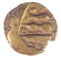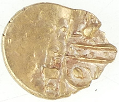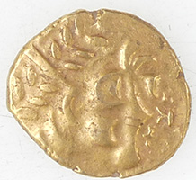 c. 20 BC-AD 10 Eastern uninscribed Celtic gold qtr stater of Dubnovellaunos sent to museum for recording 12.19mm,1.34g Dubnovellaunos in Essex quarter, VA 1660, BMC 2442, ABC 2395