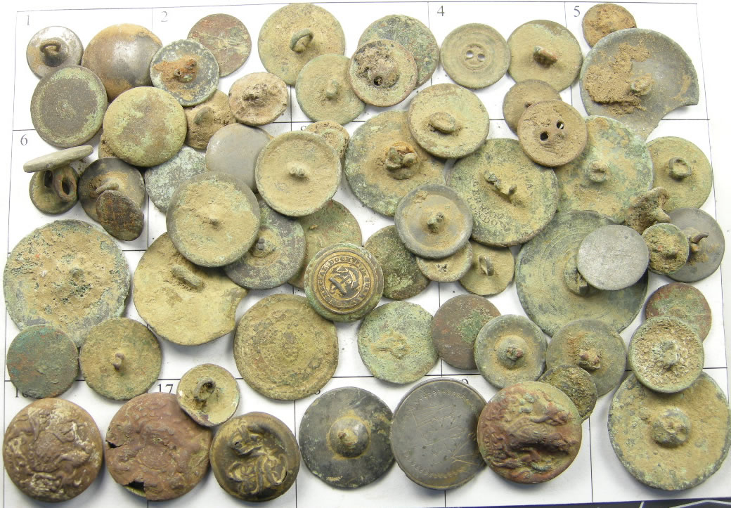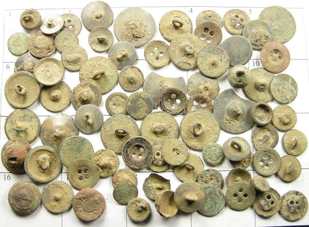 Nice group of one piece 18thC Royal Artillery buttons This is an interesting piece below I have been researching which I initially thought was a Roman latch key with the broken loop on the end. I have however found the exact type recorded in CAR report volume 5 Fig 66; 2989 as a Roman to post Roman balance (scale with beam arms of equal length). The arm has the same punched dots clearly visible on Mass Bruce's find. 'The lack of any marks to separate the punched dots into groups probably indicates that each dot represents one pound, thus making it impossible to distinguish between Roman and post Roman weights'