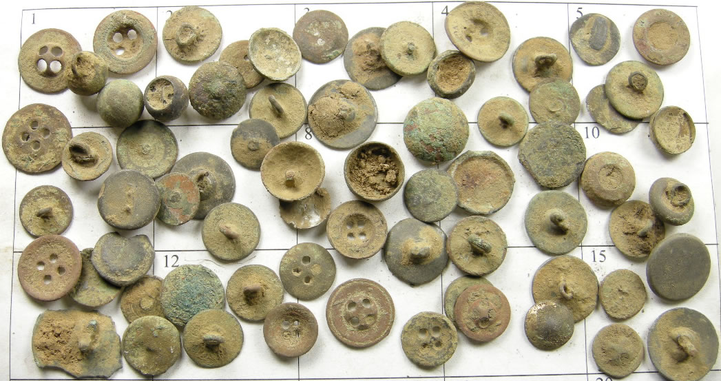 1st December 2008 More updates - Military unrecorded Updated loads more individual pages with the latest finds, links below. This season we found another bunch of unrecorded numbered and named military buttons so I have sent pictures off to their respective Regimental web sites for them to have a copy. Hopefully they will have more information on the dates these buttons were used by their regiments. |