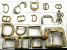 Roman balance arm - punched markings along stem -103.46 mm L Another interesting find is this silver decorated clog fastener hallmarked with the makers name and George II bust duty paid impression. 18thC silver decorated clog fastener maker WI WW -Wakely & Wheeler London - George II duty paid bust |