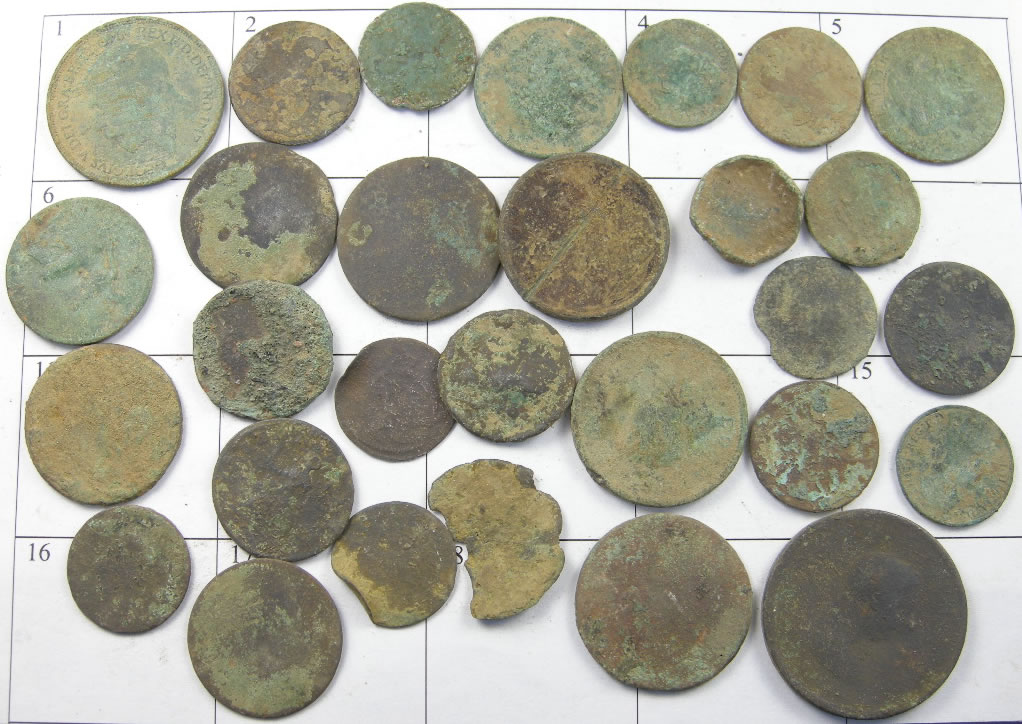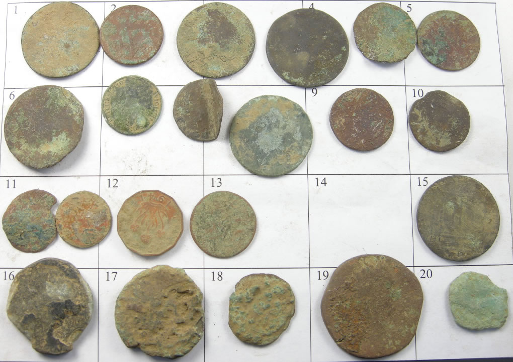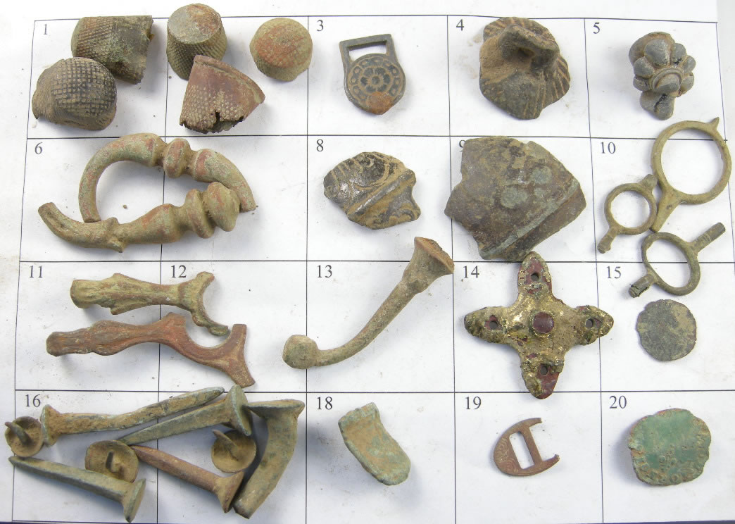 Incomplete harness strap distributor (probably a bridle cheek piece) of the late Anglo-Saxon to early Norman period ROMAN (Certain) to ROMAN (Certain), Circa 75 AD - Circa 200 AD bottom part of the same type of enameled brooch below found earlier in the season ROMAN (Certain) to ROMAN (Certain), Circa 75 AD - Circa 200 AD 1st/2ndC Roman bronze sent for ID 29.47mm, 15.03g 3rd/4th C Roman bronze sent for ID 26.44m, 4.89g |