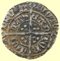 1369-1377 Edward III hammered silver half groat - Post treaty period obv ********** ANGL F FRANC rev CIVI/TAS/LON/DON London mint 18.89mm, 1.33g |