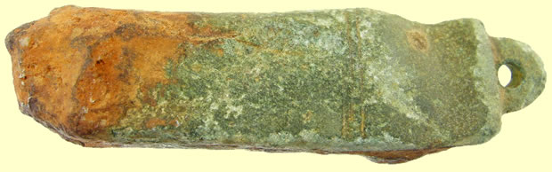 1stC BC Celtic bronze wode grinder - suspension loop type worn around the neck 51.56mm L x 10.13mm W , 12.27g |