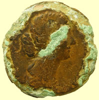 Almost 'cooked' , below is Mark Lehman's initial ID, I have resent it to him now I have 'cooked' it better You seem to be getting a lot of unintended small change lately - This is a denarius of Severus Alexander - the last member of the Severan Dynasty, 222-235 AD. This one should read: IMP C M AVR SEV ALEXAND AVG on the obverse and ANNONA AVG on the reverse. In addition to the missing parts, there seems to be either a squashed letter "A" or a letter "I" in error at the end of ANNONA. Annona was the allegorical personification of the grain supply - yes, it was THAT important to the Romans so that it required a minor deity to be "in charge" of imported grain. She's shown holding a handful of grain-ears and a cornucopia. What I can't tell is whether she has her foot on a ship's prow or there's a modius - a grain-measure basket - at her feet since that bit is missing. If it's the ship's prow, this coin dates to 228 - if it's the modius, it's 226. For our purposes, we can assume that all the silver was struck at the mint in Rome at this point in time.
