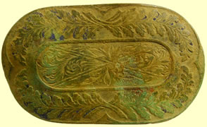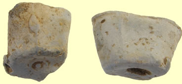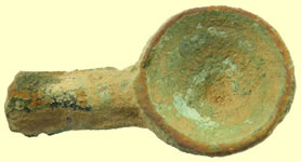 Pilgrim ampullae - holly water bottle made of lead 12th to 15thC, Scallop shell type with merchant shield on reverse These ampoule were brought from pilgrimage places as a souvenir Mitchiner suggests that many ampullae were used in the annual springtime Blessing the Fields ceremony, in which the Holy Water they contained was sprinkled on the ground to give prayer for a good harvest. Having served this purpose, Mitchiner suggests that the ampullae were discarded. Others have suggested that the ampullae were buried along with their contents for a similar purpose. |