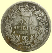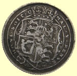 Size comparison of a milled silver halfcrown (30 pence) and a sixpence |