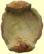Medieval Pilgrim ampullae - holly water bottle made of lead -12th to 15thC, Scallop shell type with merchant shield on reverse |