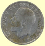 | 1943 George VI milled silver florin (24 pence) | 1931 George V milled silver shilling (12 pence) | ||||||