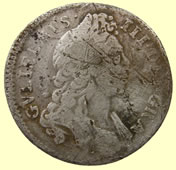| Roman lead token | 1696 William III milled silver shilling | ||