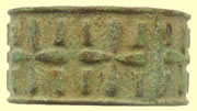 | 17thC lead token | 17thC copper decorated ring | ||