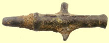 | 18thC toy cannon | 16thC button | 1696 William III milled silver sixpence | |||