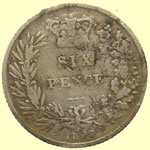 | 1553 Mary hammered silver groat | 1891 Victoria milled silver sixpence | ||