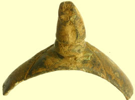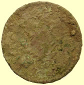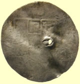 | Medieval mount | 1500-1700 mount | Ancient bronze coin - could be either Celtic or Roman so I sent off for Mark Lehmans views Perhaps the core of a fourree Celtic gold or electrum stater with a very abstract design? Otherwise it really doesn't look like anything I'm familiar with. I can run it past some folks who might have a better idea, if you'd like. Mark |